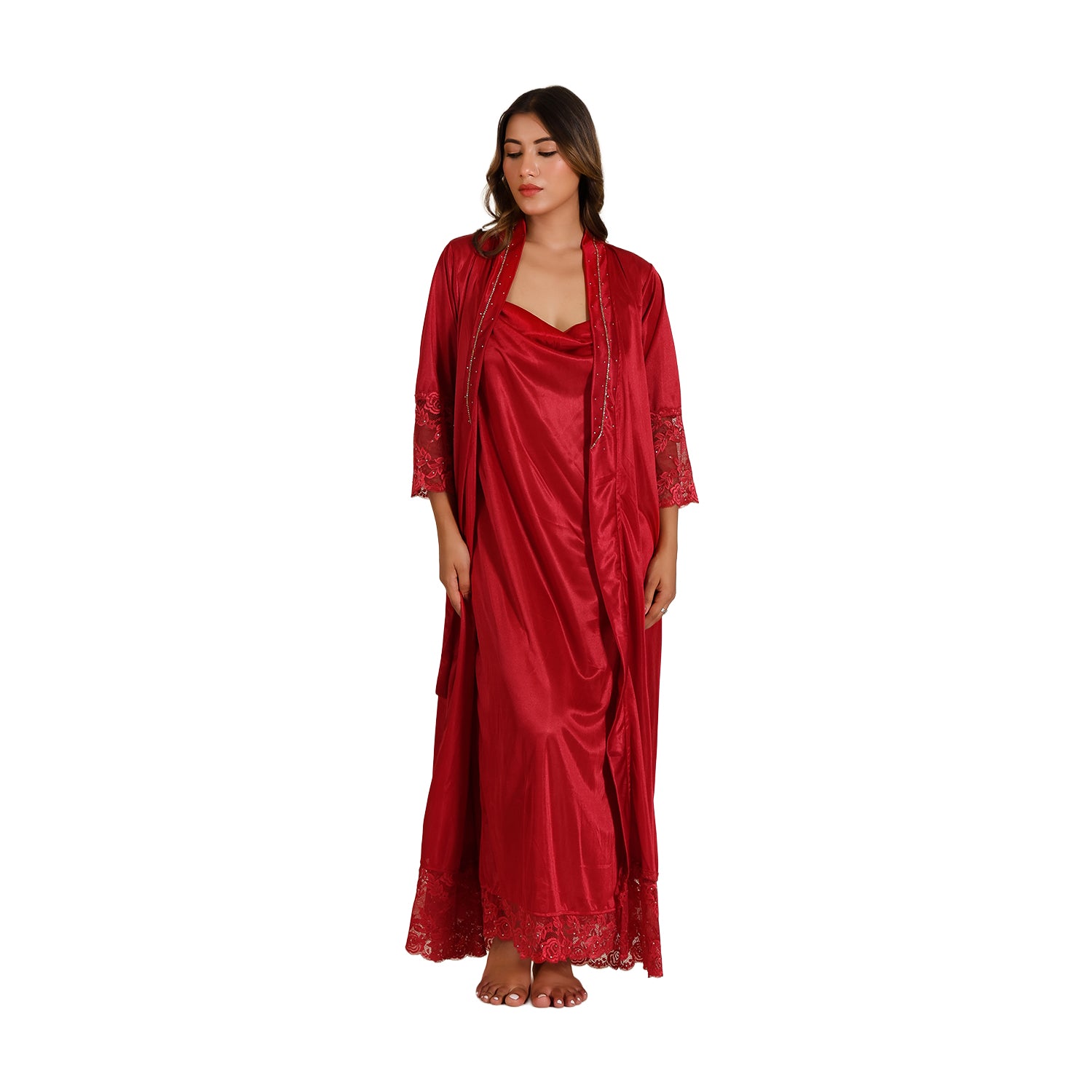 Women Nighty Satin Gown with Robe (Swarovski mini dot)