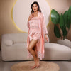 Women Nighty Japani Satin Top & Shorts with Robe (Pearl Flower)