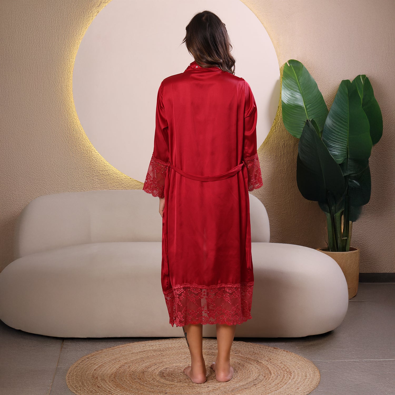 Occasion:- This silky satin robe great for sleepwear, nightwear, loungewear, bathrobe, Valentine's Day, romantic night, wedding night.