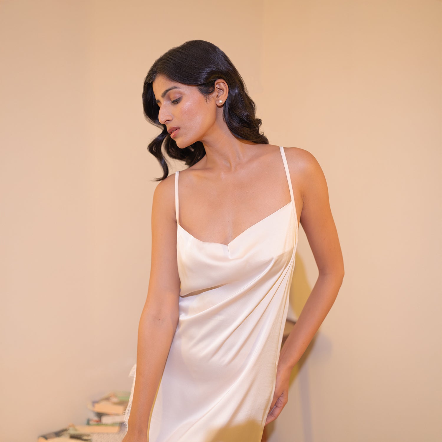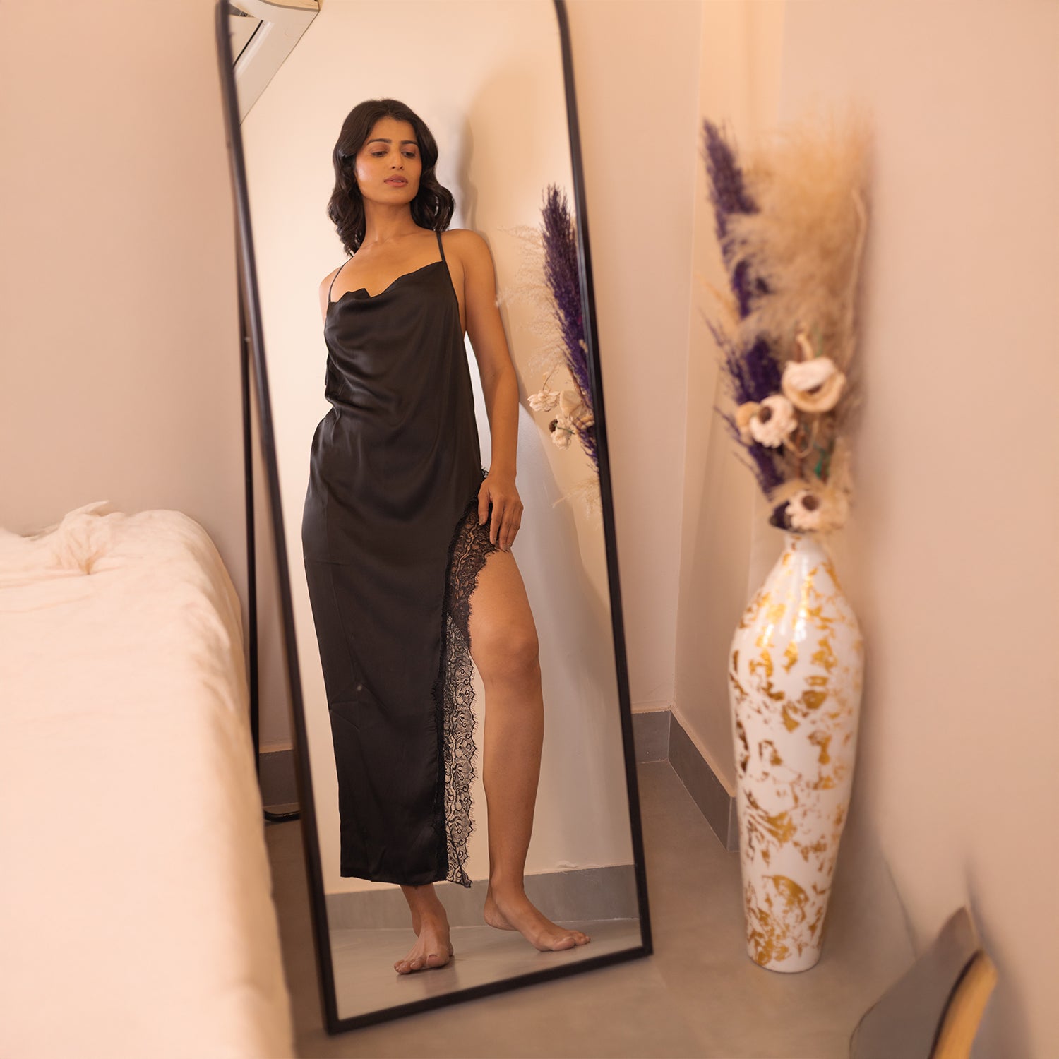 This chic nightdress is comfortable as well as feminine, making it a perfect wear for a relaxed evening at home. Club those fluffy room slippers with this one to soak in a chill vibe.
